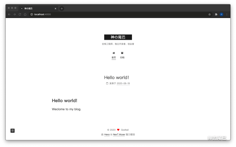 启动后,访问:http://localhost:4000,查看博客效果,如下图所示:
